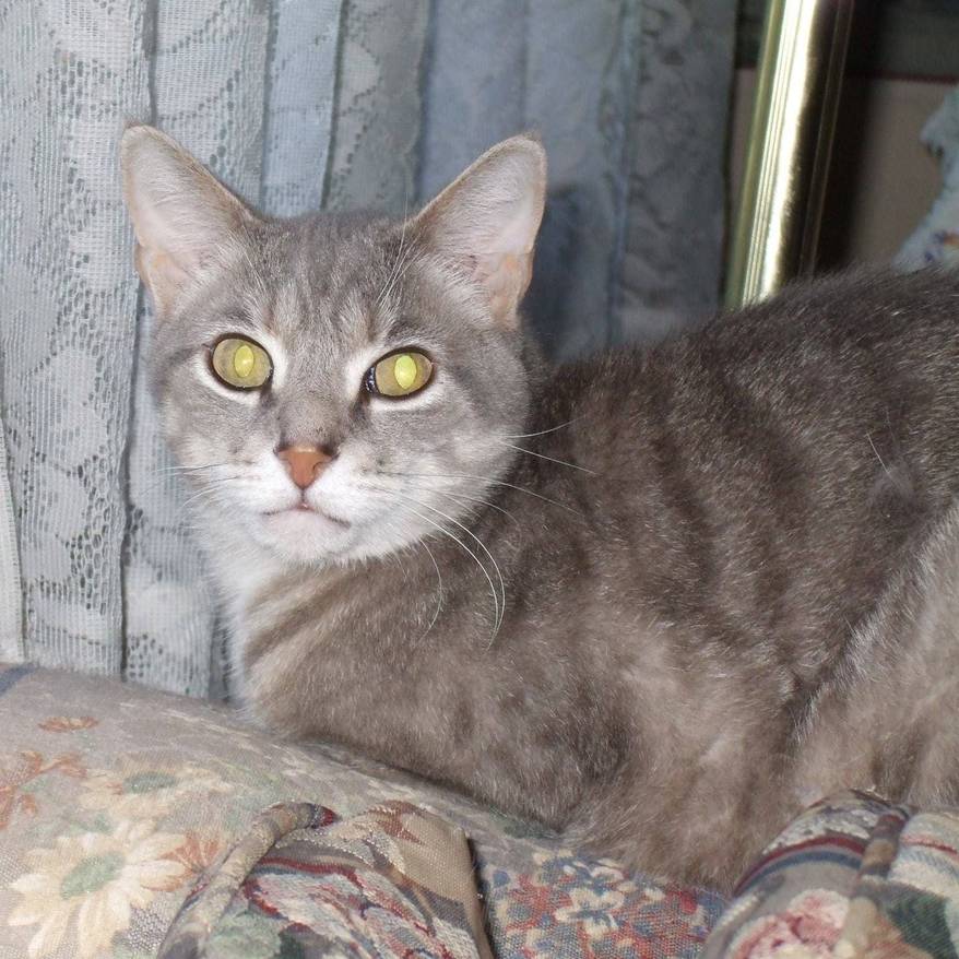 Her adoption of Dublin was similar to how she adopted Nickel years earlier. "I had gone to an SPCA with a friend to see a cat she found injured under her car ... and while we were there, she noticed this adorable gray kitten (he was maybe six months old) who seemed to be reaching out to us through the bars of the cage with his paw." It wasn't until Tara and her friend got closer to the cage that she realized the kitten was actually missing part of his paw. Since the shelter was waiting for an owner to claim the cat, Tara put her name down on the waiting list to adopt. When they called days later, Dublin's health was failing, and he had developed a fever. "I picked him up, took him straight to the vet, had what was left of that leg removed and then brought him home. Maybe three days later, still on pain killers, still all bandaged up, I found him on top of my armoire. To this day, I never figured out how he got up there, but nothing ever held him back."