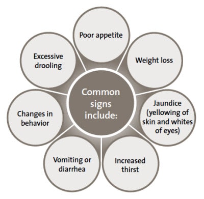 The signs of liver disease can be very similar to those of other conditions. If you notice any of the following signs in your cat, contact your veterinarian for a complete examination.