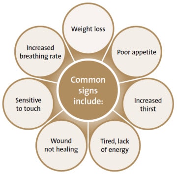 Recovery can be delayed by a number of factors including incorrect nutrition and not eating enough. Whatever the reason, it’s important to look for the following signs. If you notice any of them, contact your veterinarian.