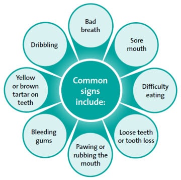 In fact, research shows that at around the age of 2, 70% of cats have some sign of dental disease. Problems usually start with a buildup of sticky plaque that hardens to form tartar. If not removed, this can lead to gingivitis, a painful condition of inflamed gums, and eventually periodontal disease may develop. Cats may lose teeth and be prone to infections that may affect other organs in the body.
