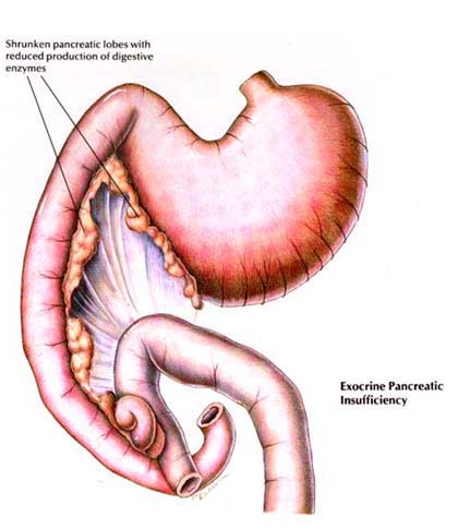 Exocrine pancreatic insufficiency: This condition is characterized by weight loss, increased appetite and large amounts of soft feces.