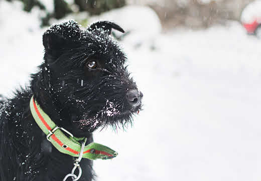 Senior dogs in winter are especially susceptible to the elements, and you may find underlying health issues are agitated by cold weather. If you have a senior dog, consider altering some of your usual routines. Avoid going up and down stairs as much as possible — or, if you can, carry your dog to help protect their joints. Pay extra close attention to their behavior to ensure they aren't exhibiting any obvious signs of pain or discomfort.